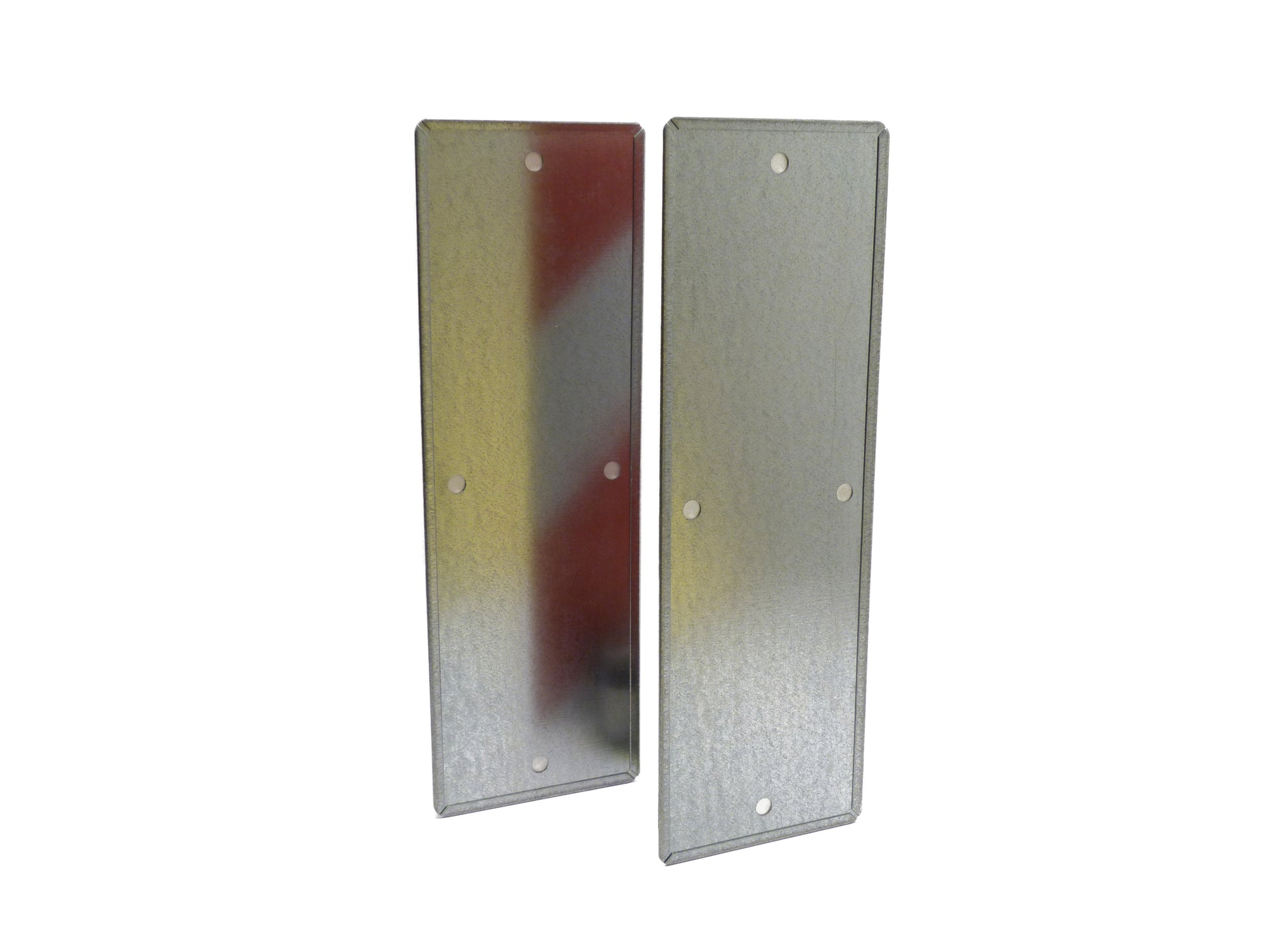 Warning plate set with foil 423mm x 141mm. Support plate 0.8mm galvanized sheet, all sides flanged. Set, 2-piece, foil one-sided.