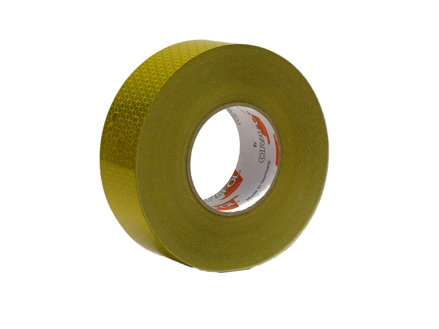 Konturmarkierung für Fahrzeuge und Anhänger mit Festaufbauten. Mit einer Breite von 50mm und einer Länge von 50 Metern ist das Band entsprechend § 53 StVZO sowie der ECE 48 und ECE 104.