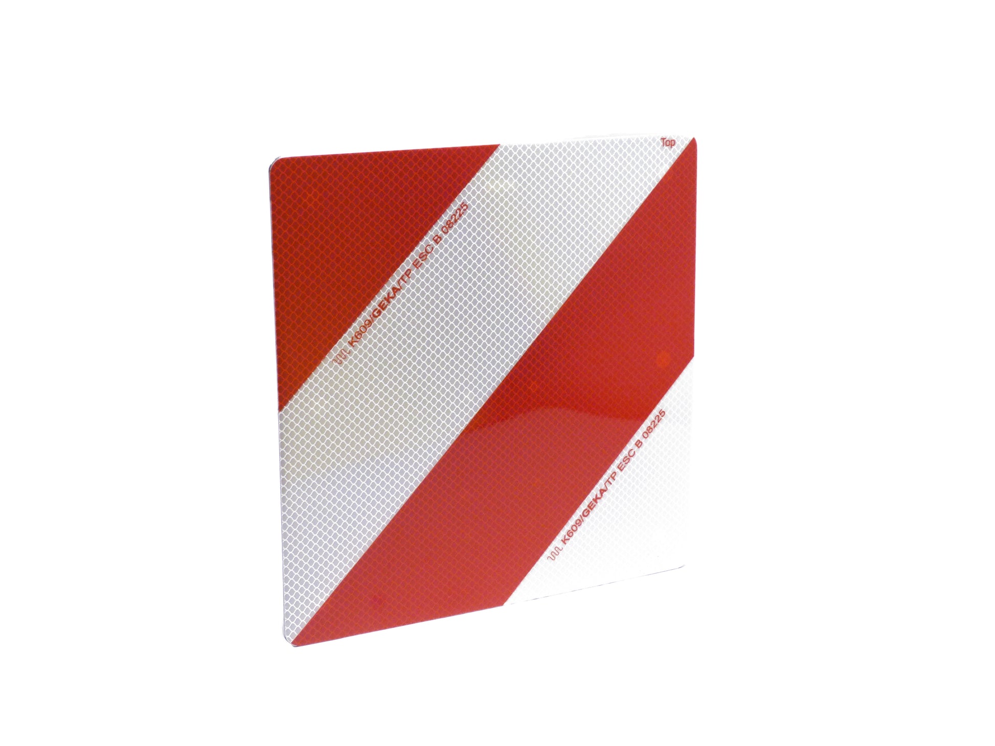 Reflective panel with type 3 foil 283mm x 283mm. Support plate 1mm galvanized sheet, all sides flanged. Foil on one side, pointing left.