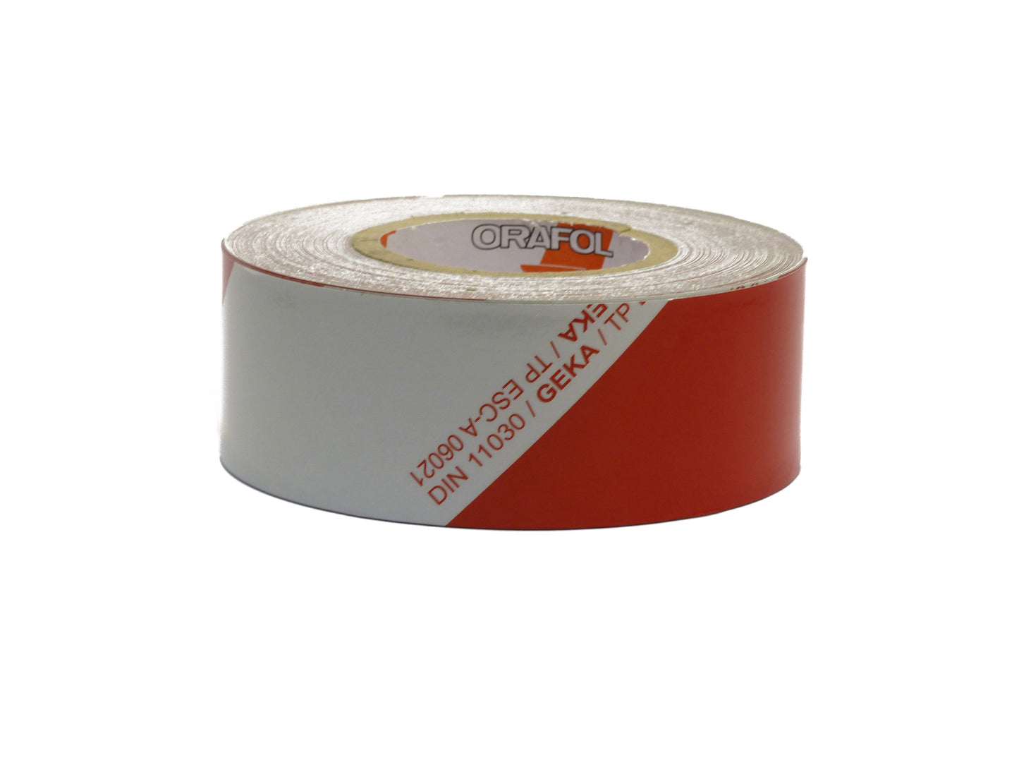 Warning foil for sticking type 1 foil according to DIN 11030, 50m long roll. 60mm wide, pointing left.
