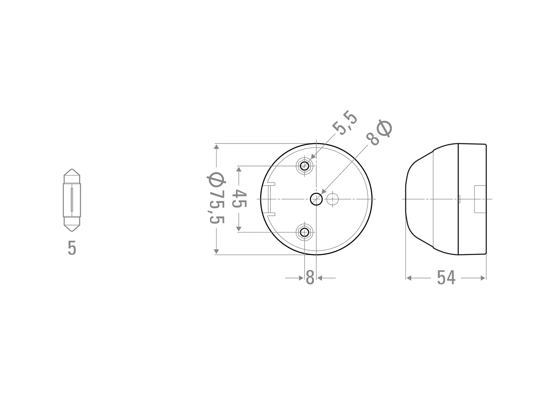 Feu de position rond 75mm blanc