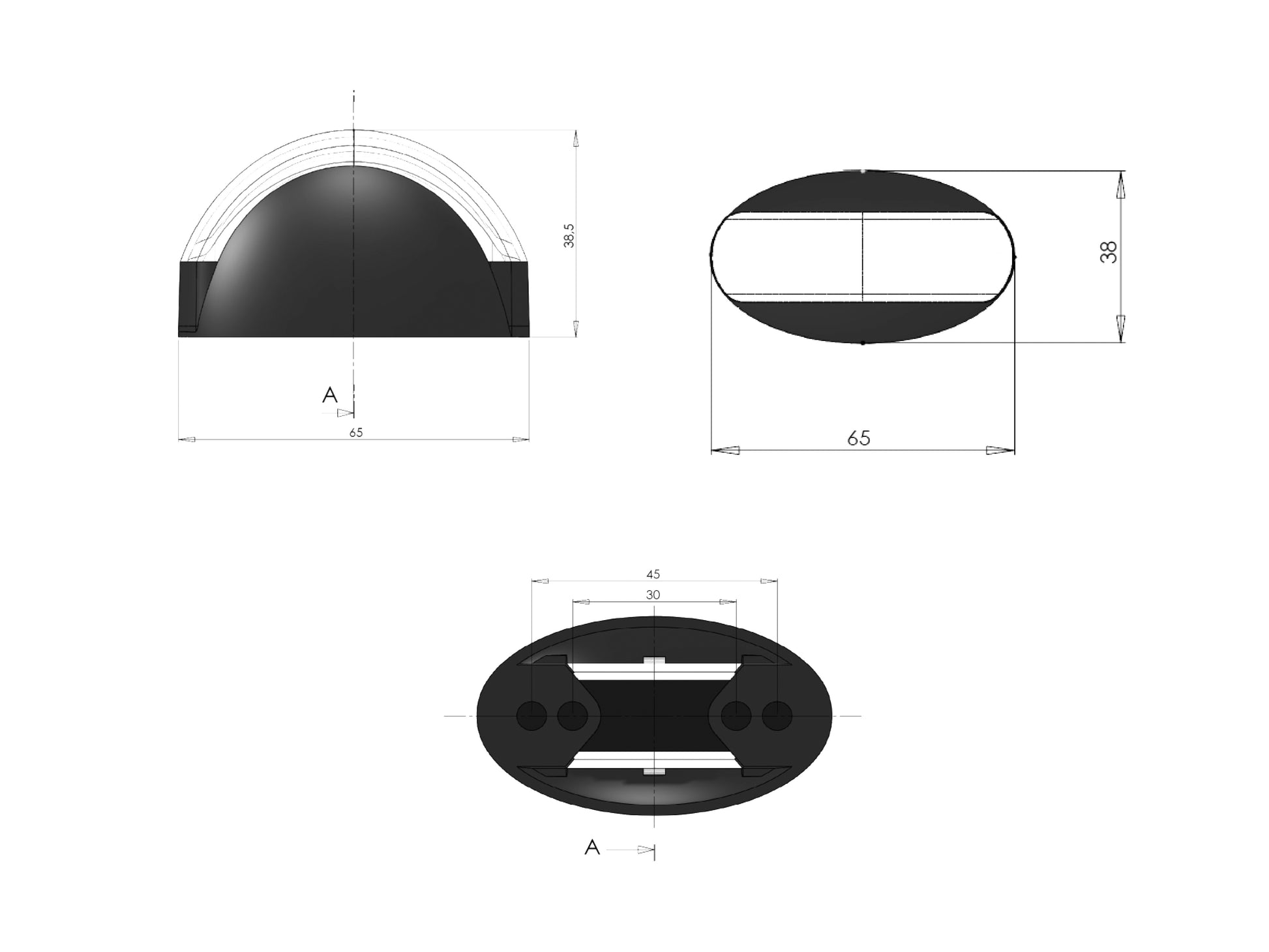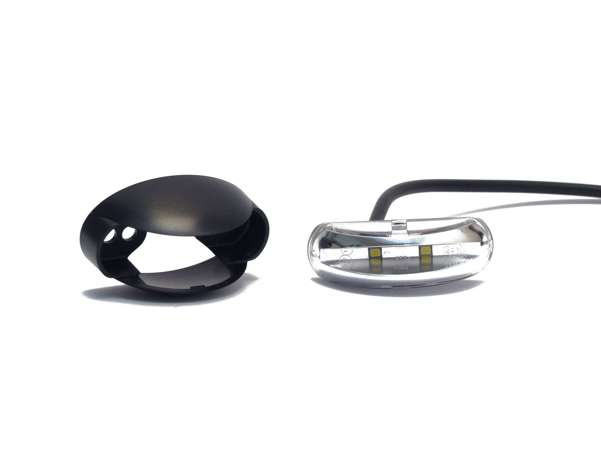 Die ovale Leuchte ist in eine Kunststofffassung geklemmt, welche zur einfachen Montage separat angebracht und anschließend mit der LED Leuchte bestückt werden kann.